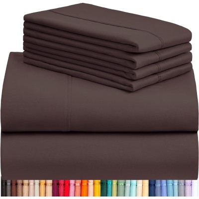 6-Piece Sheet Set, Rayon Made from Bamboo Sheets, Deep Pocket 18" Eco-friendly Wrinkle-Resistant Cooling Sheets - Brown