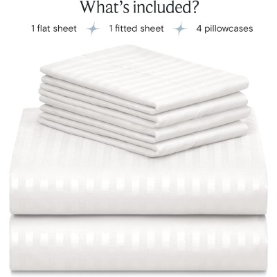 6-Piece Sheet Set, Rayon Made from Bamboo Fiber, Deep Pocket 18" Wrinkle-Resistant Cooling Sheets - Striped White