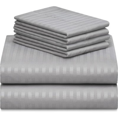 6-Piece Sheet Set, Rayon Made from Bamboo Fiber, Deep Pocket 18" Wrinkle-Resistant Cooling Sheets - Striped Light Gray