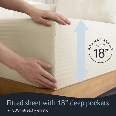 Medium Set of 6, Rayon Made from Bamboo Sheets, Deep Pocket 18" Wrinkle-Resistant Cooling Sheets - Striped Cream