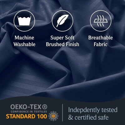 6-Piece Queen Sheet Set, Rayon Made from Bamboo Sheets, Deep Pocket 18" Wrinkle-Resistant Cooling Sheets - Striped Navy