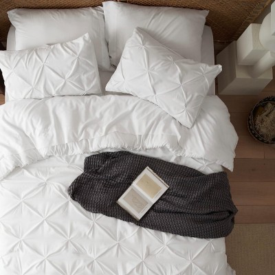 7-Piece Pintuck Bedding Set White Bedding Set with Comforter, Flat Sheet, Pillow Case and Pillow Case