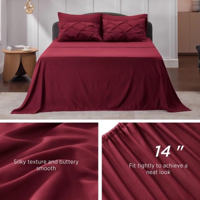 Burgundy Quilt Set Queen - Bed in a Bag Queen 7-piece Set, Pintuck Bedding Set Burgundy Bedding Set