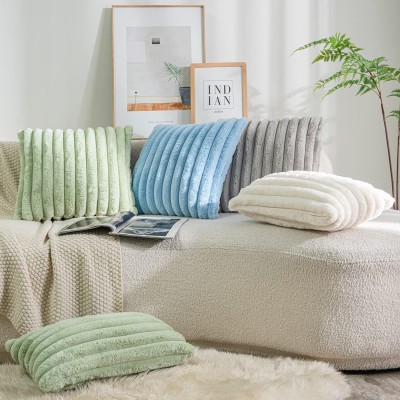 Faux Fur Plush Decorative Throw Pillow Cover Fuzzy Striped Soft Pillow Cover Cushion Cover Sofa Bedroom 20x20 Inch