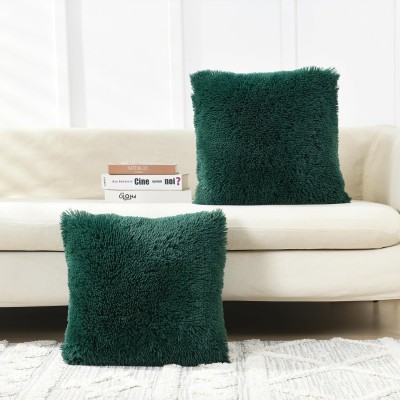 Faux Fur Cushion Pillow Cover Decorative Throw Pillow Cover, No Insert, 55.88cm x 55.88cm, Forest Green, 2-Pack