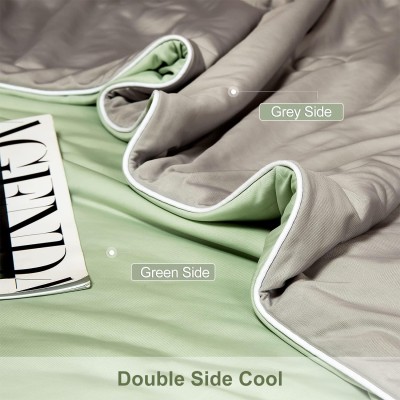 Cool Lightweight Blanket Summer Reversible Cool, Cool Quilt (Queen Size 200.6cm x 231.1cm Green and Gray)