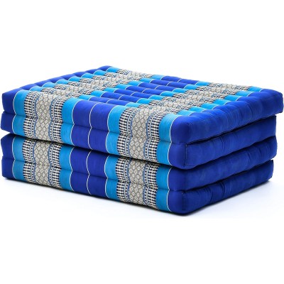 Tri-Fold Mattress Standard – Comfortable Thai Massage Cushion, Floor Mattress Filling Kapok, 79 x 28 inches, Blue