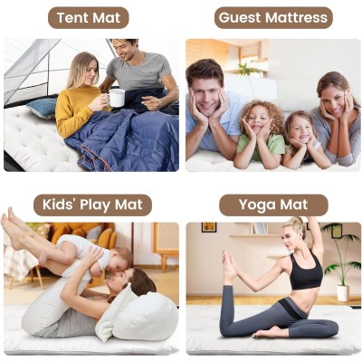 Japanese Futon Mattress Full Size 137.16cm x 203.20cm, 100% Cotton Floor Mattress, Foldable (White)