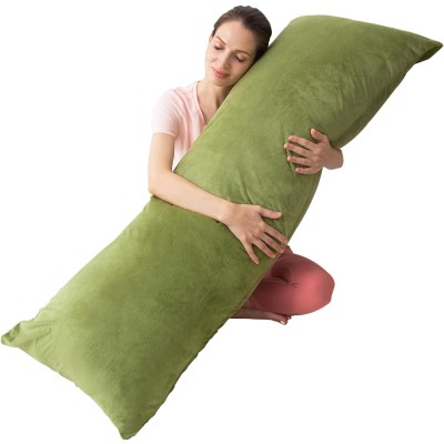 Bed length pillow, firm queen body pillow with velvet cover, ideal for side sleeping, 50.8 x 137.1 cm (green)