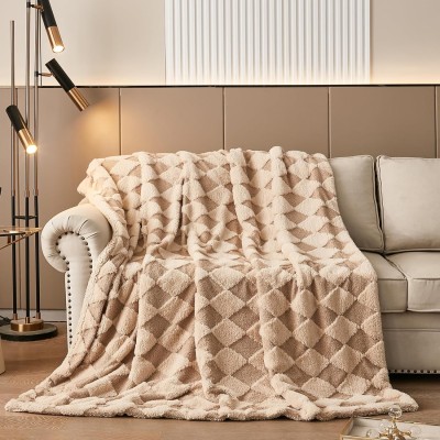 Faux Fur Rabbit Fur Throw Khaki 152.40cm * 203.20cm, Reversible Sheep Fleece Blanket, Double Plush Elegant Blanket