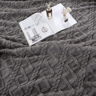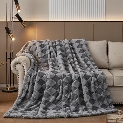 Sheep Fleece Blanket Reversible Plush Fluffy Plaid Flannel Blanket for Sofa Bed (Faux Fur Gray, 152.4cm * 203.2cm)