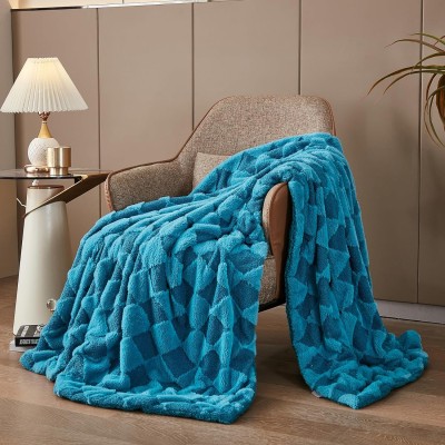 Faux Fur Rabbit Fur Throw Blue 228.6cm x 203.2cm, Plush Reversible Sherpa Blanket, Large Plush Elegant Blanket