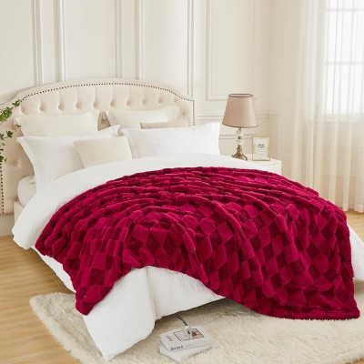 Sherpa Blanket Reversible Plush Fluffy Plaid Flannel Blanket for Sofa Bed (Faux Fur Burgundy, 203.2cm * 228.6cm)
