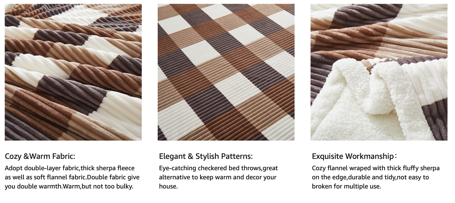 Large Plaid Thick Bed Blanket, 203.20cm * 228.60cm Soft Flannel Double Sided Velvet Plush Warm Blanket (Beige Plaid)