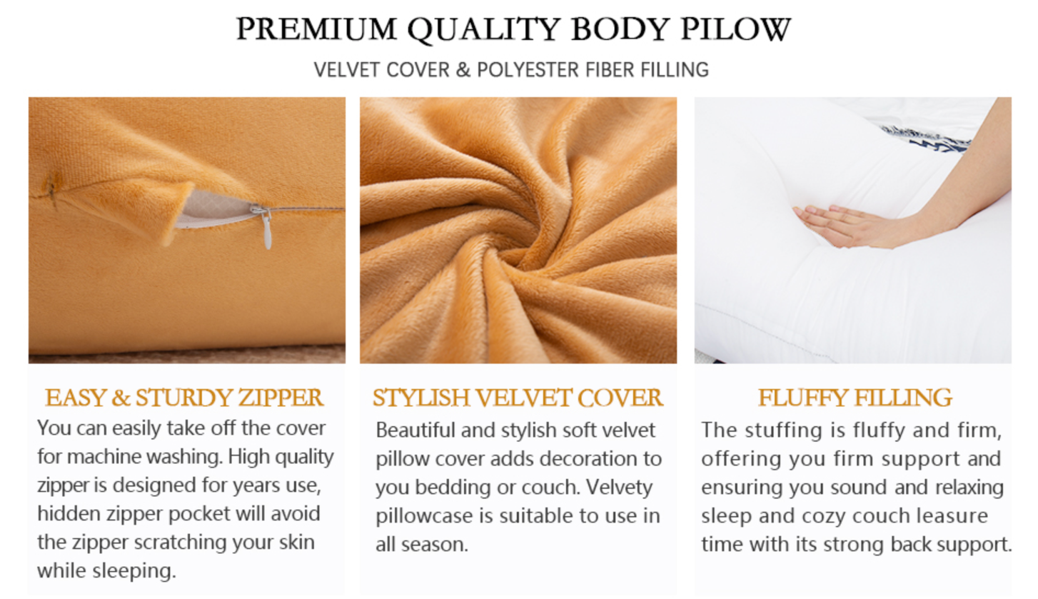 Bed Length Pillow, Firm Queen Size Body Pillow with Velvet Cover for Side Sleeping, 50.8 x 137.1 cm (Brown)